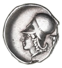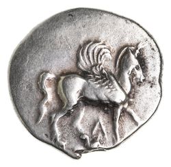 EPEIROS, Ambrakia, (c.360-338 B.C.), silver stater, (8,32 g), obv. Pegasos standing to right, A below, rev. helmeted head of Athena to left, head of river god Achelous facing (androcephalous bull), behind, (cf.S.1958, Calciati 88, Cammann (NN&M 53) No.1, Ravel 137 (NN&M 37), McClean 5098, BMC 19 [same dies]). Nearly extremely fine and very rare.