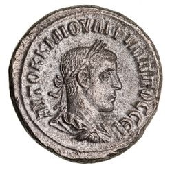 SYRIA, Antioch ad Orontem, Philip II, (247-49 AD), billon tetradrachm (11.36g), Emesan issue, issued 249 AD, obv. laureate, draped, and cuirassed bust right, AYT OK KMIOYA III AINNOCEI rev. eagle standing to front, head right, holdong a wreath in it's beak, [DHNAPX ESOVCAIC YNA TO R] around, ANTIOXIA in exergue, SC below (Prieur 474; c.f. S.4146) . Well struck on a broad flan, underlying lustre, good very fine or better.