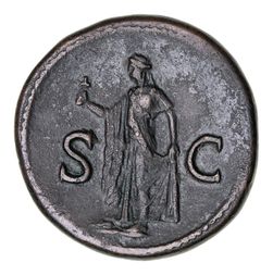 DOMITIAN, (A.D. 81-96), AE quadrans, Rome Mint, (2.78 g), obv. laureate bust left, around CAES ...