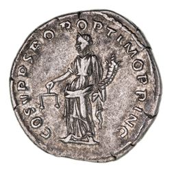 TRAJAN, (A.D. 98-117), silver denarius, issued 108, Rome Mint, (3.41 g), obv. laureate head draped on right shoulder to right of Trajan, around IMP TRAIANO AVG GER DAC P M TR P, rev. Aequitas standing to left, holding cornucopiae and scales, around COS V P P S P Q R OPTIMO PRINC, (S.3122, cf.RIC 118, RSC 85). Very fine scarce.