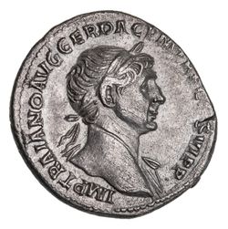 TRAJAN, (A.D. 98-117), silver denarius (3.17g), Rome mint, issued 113-117 AD, obv. laureate bust of ...