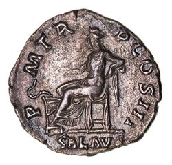 HADRIAN, (A.D. 117-38), silver denarius (3.21g), obv. laureate head right, IMP CAESAR TRAIAN HADRIANVS AVG, rev. Salus enthroned left, feeding snake rising from alter, PM TR P COS III around, SAL AVG in exergue (cf S.3539; RIC 137a; RSC 1324). Old cabinet tone, nearly extremely fine.