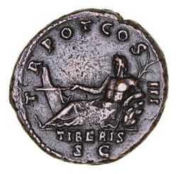 ANTONINUS PIUS, (A.D. 138-161), AE as, (10.00 g), Rome Mint, issued A.D. 141-2, obv. laureate head of Antoninus Pius to right, around ANTONINVS AVG PIVS, rev. TIBERIS SC in exergue, around TR POT COS III, Tiber reclining to left on rocks, resting right hand on boat, holding reed in left hand, (cf.S.4237, RIC 706a, BMC 1386, C.822). Dark brown patina, very fine/nearly extremely fine and rare.