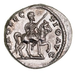 SEPTIMIUS SEVERUS, (A.D. 193-211), silver denarius, Laodicea Mint, issued A.D. 197, (3.59 g), obv. laureate head of Septimius Severus to right, around L SEPT SEV PERT AVG IMP VIII, rev. around PROFEC TIO AVG, Severus on horseback right holding spear, (cf.S.6256, RIC 494, RSC 580). Slightly granular surfaces, extremely fine.