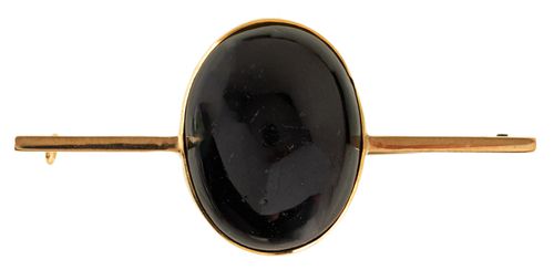 ONYX BROOCH, in gold (9ct; 3.54g; 42x12mm), by A.O.Kopp, features a bar with an oval ...