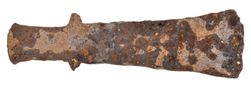 ROMAN, c.1st-4th century A.D., bronze axe head, long slender form with mounting sprues, (14.5 cm long). Surface pitting, nearly very fine and scarce.
