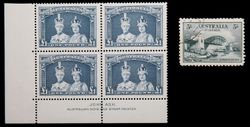 AUSTRALIA, collector's album with 16 full pages of various rare and scarce stamps, highlights include the 5/- Sydney Bridge CTO (SG 143), 1937 5/- to ?1 Robes in John, Ash Imprint blocks on thick paper (SG 176/8), and 1966 Decimal Navigators set in unmounted mint marginal blocks (SG 398/403). All in a small red album, MUH. (lot)