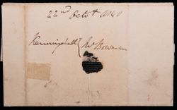 GREAT BRITAIN, one penny black, 1840, four margins on cover to Norfolk dated 22nd Oct ...