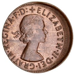 ELIZABETH II, penny, 1963, struck off centre by 10 percent. Extremely fine.