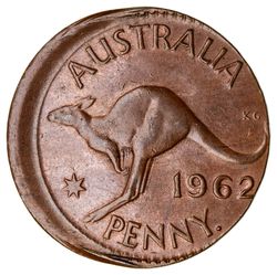 ELIZABETH II, penny, 1962 Y., struck about twelve percent off centre. Extremely fine.