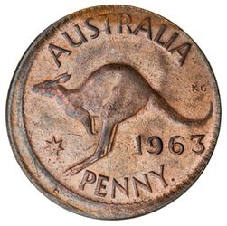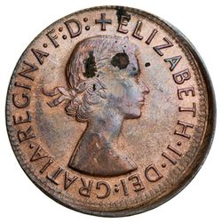 ELIZABETH II, penny, 1963, struck off centre by 10 percent. Extremely fine.