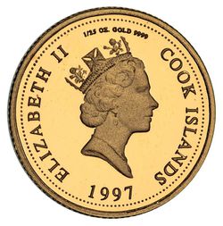 ELIZABETH II, Perth Mint, proof-like five dollars in 24 carat gold, 1997, Princess Diana commemorative issue, Cook Islands. In case of issue. FDC.