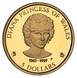 ELIZABETH II, Perth Mint, proof-like five dollars in 24 carat gold, 1997, Princess Diana commemorative ...