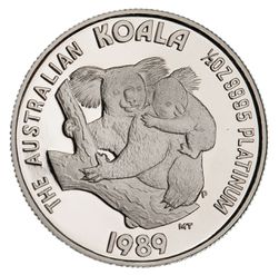 ELIZABETH II, Perth Mint, proof half ounce platinum koalas, 1989 and 1995. In cases of issue, ingot Nos. 00221 and 049, FDC. (2)