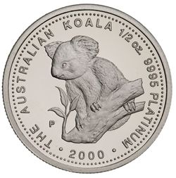 ELIZABETH II, Perth Mint, proof half ounce platinum koala, 2000. In case of issue, No. ...