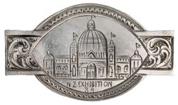 NEW ZEALAND EXHIBITION, 1889, Dunedin, hand engraved exhibition badge, in silver (45 x 25 mm), ...
