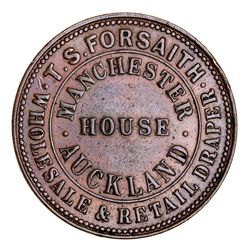 FORSAITH, T.S., Auckland halfpenny, 1858 (A.131). Dark brown patina, good very fine and very scarce. ...