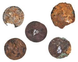WRECK SALVAGE, Holloway pennies (1), Hanks & Lloyd (3), one unidentifiable, salvaged from the wreck ...