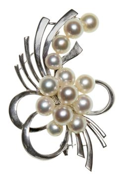 AKOYA PEARL BROOCH, in sterling silver, set with 13 round Akoya pearls varying in size ...