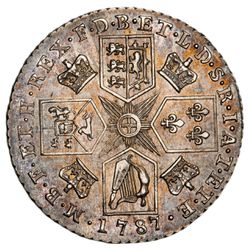GREAT BRITAIN, George III, silver shilling, 1787, without semee of hearts (S.3743). Toned extremely fine. ...