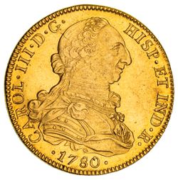 MEXICO, Charles III, gold eight escudos, 1780 FF, Mexico City Mint (KM.156.2). Mirror-like fields, unmarked ...