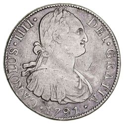 MEXICO, Charles IIII, silver eight reales, 1791 F.M., Mexico City Mint (KM.109). Good fine.