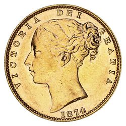 QUEEN VICTORIA, 1874 Melbourne. Nearly uncirculated and rare in this condition.