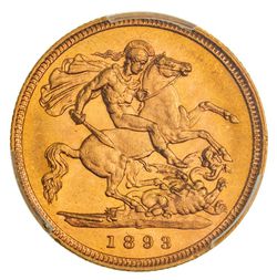 QUEEN VICTORIA, old head, 1893 Sydney. Blocked rim, nearly uncirculated.