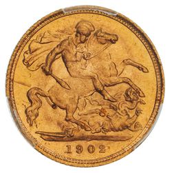 EDWARD VII, 1902 Sydney. Reverse scratch near tail, obverse contacts on neck, otherwise full mint bloom uncirculated.