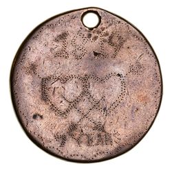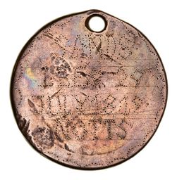 CONVICT LOVE TOKEN, engraved on a 1797 cartwheel penny with both sides shaved smooth, holed ...