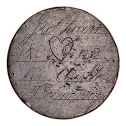 CONVICT LOVE TOKEN, engraved on a 1797 cartwheel penny shaved smooth on both sides, on ...
