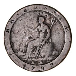 CONVICT LOVE TOKEN, on a 1797 cartwheel penny with obverse shaved smooth, on the obverse ...