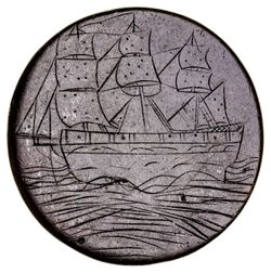 LOVE TOKEN, smoothed halfpenny, barque on water engraved on obverse, reverse engraved 'Jams Halewood 1783'. Very fine.