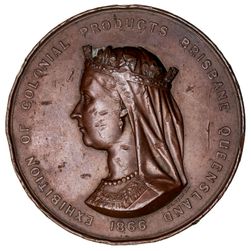 EXHIBITION OF COLONIAL PRODUCTS, Brisbane, Queensland, 1866, in bronze (63.5mm), by J.S Wyon, unnamed as issued. Edge bumps and contact marks, otherwise fine.