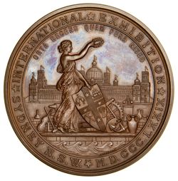 SYDNEY INTERNATIONAL EXHIBITION, N,S.W., 1879, in bronze (76mm), by J.S. & A.B.Wyon, features a figure ...