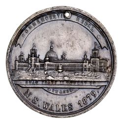 FIRST INTERNATIONAL EXHIBITION, New South Wales, 1879, in silver (38.5mm) (C.1879/7), by Evan Jones, Sydney. Holed at top, contact marks and some edge bumps, otherwise very fine.