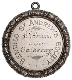 BENDIGO ST ANDREWS SOCIETY, 3rd Annual Gathering, (1889), in silver (51.5mm), features plain silver disc ...