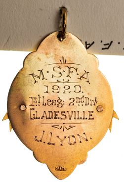 MSFA, in 9 carat gold (8.54g) '1920/1st Leag. 2nd Div/Gladesville/J. Lyon'. Nearly extremely fine.