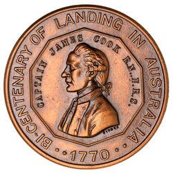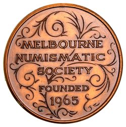MELBOURNE NUMISMATIC SOCIETY, Founded 1965, in bronze, Bi-centenary of Landing in Australia, 1770 (C.1970), one of 75 minted. With owners holder, very fine.