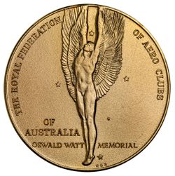 OSWALD WATT MEMORIAL GOLD MEDAL, in gilt bronze (56mm), by K.G.L(uke), for the most notable contribution to aviation by an Australia, awarded to G.A. (Peter) Lloyd AC MBE MiD, 2016, in original presentation box. Extremely fine.