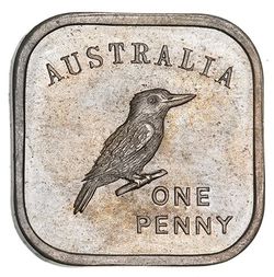 GEORGE V, Melbourne Mint pattern square, cupro-nickel kookaburra penny 1919, by Stokes & Son (R. ...