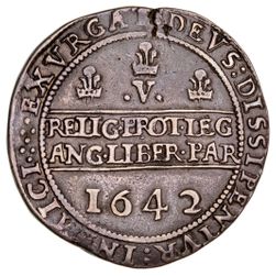 CHARLES I, (1625 - 1649), Shrewsbury mint, silver crown, mm pellet, dated 1642, Morrieson B-5, ...
