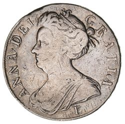 ANNE, after the Union, silver halfcrown, 1708 plumes (S.3606). Toned, nearly very fine.