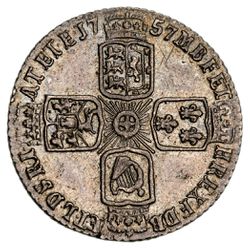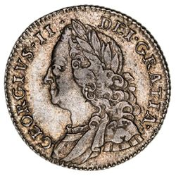GEORGE II, old head, silver shilling, 1743 roses (S.3702). Attractively toned, nearly extremely fine.