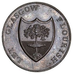 EIGHTEENTH CENTURY HALFPENNY TOKENS (41), unofficial farthings (5), pennies (4), nineteenth century pennies (3), Free Museum (Withers 3051); Scotland Angusshire (D&H 5 (penny), 12, 15, 16, 21, 25); Fifeshire (D&H 2); Lanarkshire (D&H 7, 13, 14a, 20, 27, 33, 37, 50a); Perthshire (D&H 1, 5, 10, 11 (farthing)); Ireland, Dublin (D&H 27, 338, 351); Cronebane (D&H 63, 68, 449); Wexford (D&H 3); Wales (D&H 19, 39, 275); North Wales (D&H 12); Carmarthen (D&H 6), all in 2x2 capsules in 2 trays. Fine - extremely fine. (50)