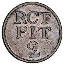 ROYAL COBURG THEATRE, RCT Pit 2 in copper (31mm) (Withers 91). Very fine.