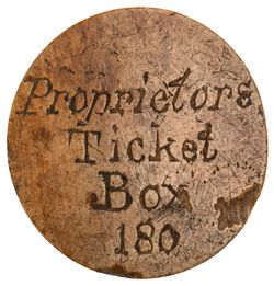 COVENT GARDEN THEATRE, in ivory (41mm) 1799 rev. 'Proprietor's/Ticket/Box/180' (cf Withers 155). Nearly very fine and very rare.