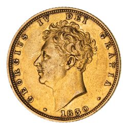 GEORGE IV, bare head left, sovereign, 1830 (S.3801). Good very fine.