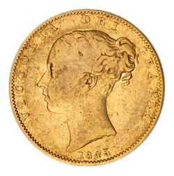 QUEEN VICTORIA, young head, sovereign, 1844, closer date (S.3852). Surface marks on obverse, otherwise very ...