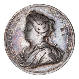 ANNE, Coronation 1702 in silver (35mm) by J. Croker (Eimer 390). Adjustment marks otherwise grey ...
